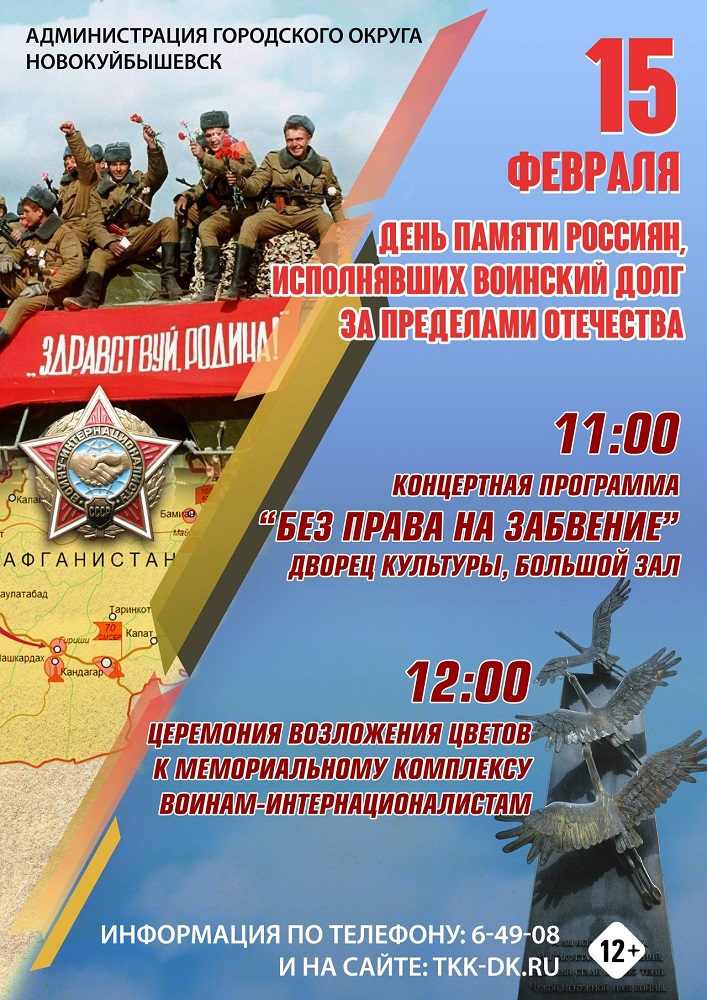 «Без права на забвение» концертная программа, посвященная Дню памяти россиян, исполнявших воинский долг за пределами Отечества (12+) Церемония возложения цветов, посвященная Дню памяти россиян, исполнявших […] Читать Далее