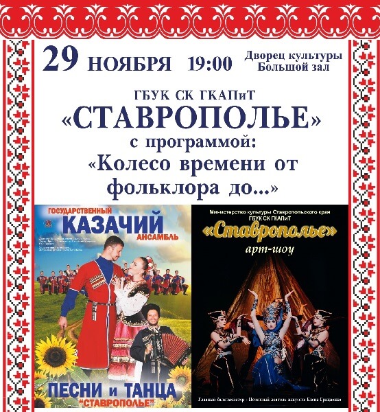 Визитная карточка солнечного, изобильного, щедрого Ставропольского края — государственный казачий ансамбль песни и танца «Ставрополье», представляет эксклюзивную программу «Колесо времени: от фольклора до…»
