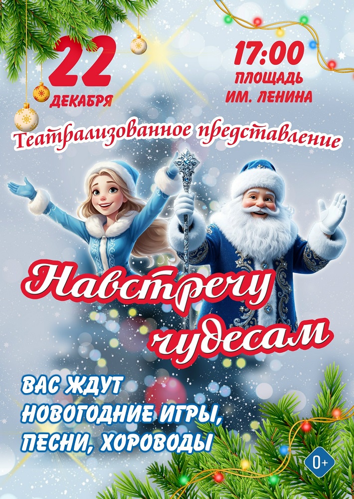 22 декабря в 17 часов на Центральной площади имени Ленина состоится новогоднее представление «Навстречу чудесам».