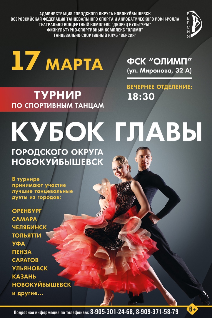 Открытый городской турнир по спортивным бальным танцам на Кубок главы г.о. Новокуйбышевск 6+