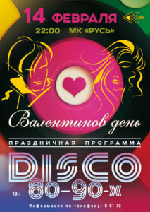 «Валентинов день» танцевальная праздничная дискотека с программой (18+)